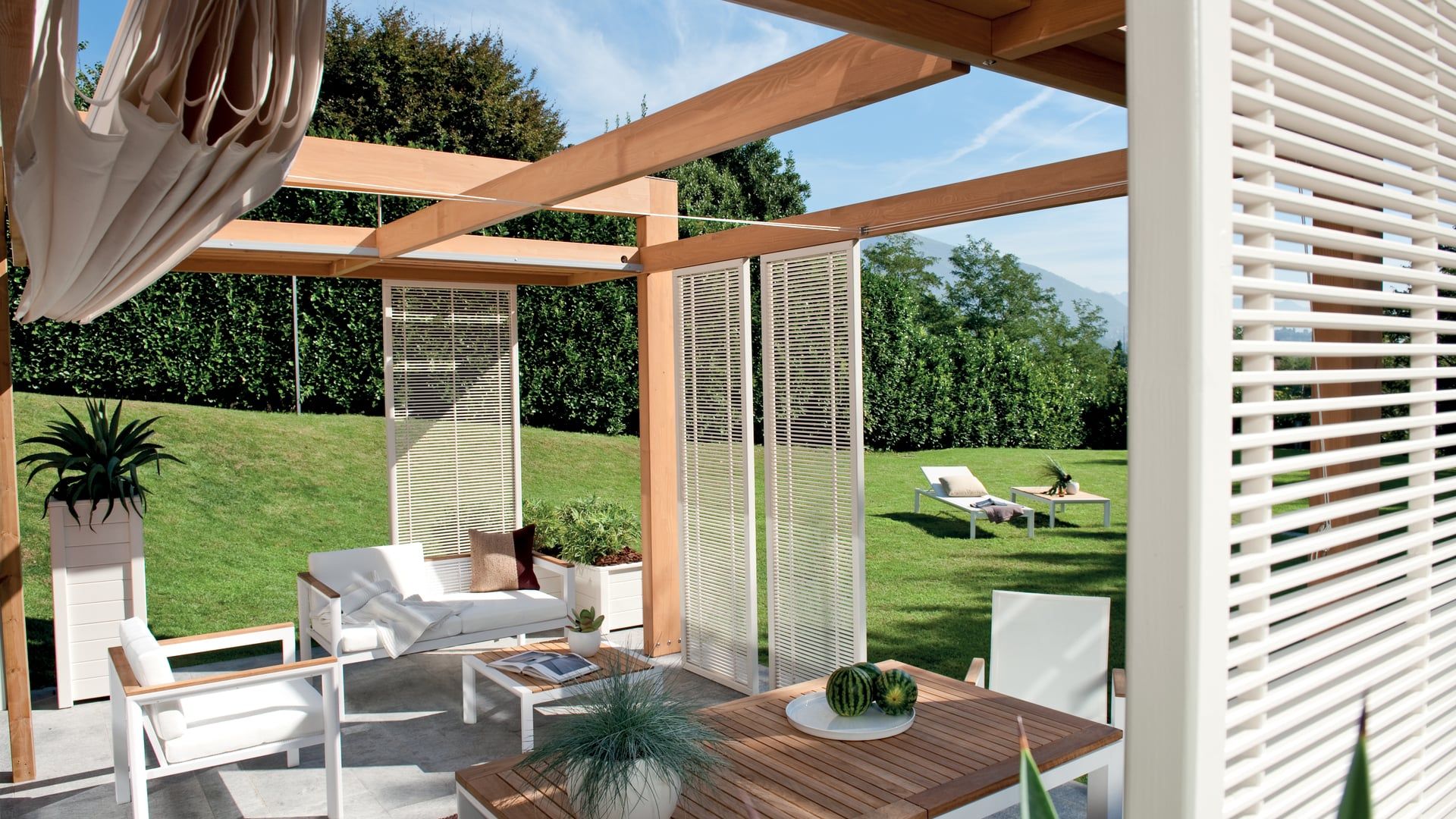 Offre arredi per esterni di propria produzione in legno, ferro, resina, plexiglass e strutture su misura bioclimatiche in alluminio, legno e ferro: pergole, verande, gazebo, coperture fotovoltaiche.